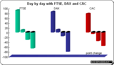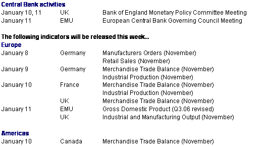 The exuberant start to 2007 was quickly squelched after Tuesday's robust beginning to the New Year. European shares hit their highest levels since February 2001 despite low volumes. Both U.S. and Japanese markets were closed and there was little in the way of fresh economic data to provide momentum. Stocks that were targeted as possible takeover candidates or picked to be strong performers in 2007 flourished. Bankers are predicting another strong year of mergers and acquisitions after record merger and acquisitions activity in 2006. Tuesday's gains offset the rest of the week's declines for the most part. Both the CAC and DAX were down less than 0.5 percent on the week while the FTSE barely missed breaking even.