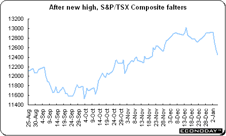 The Canadian dollar and the Canadian stock market have been feeling the brunt of recent commodity price fluctuations. The Canadian dollar, which tends to follow commodity prices, dropped to an 11-month low on speculation that declining prices might cause the currency's decline to accelerate. The currency tends to follow the price of commodities, which account for about 54 percent of Canada's exports. Crude oil fell to its lowest level in more than six weeks as mild U.S. weather curbed heating-fuel consumption, while copper dropped to an eight-month low as investors speculated prices were exaggerated. Stocks also have declined from record highs under the pressure from lower commodity prices with producers share prices being particularly hard hit. The S&P/TSX composite sank by 430.42 points or 3.3 percent in this holiday shortened week. Energy shares account for more than 25 percent of the index's value.