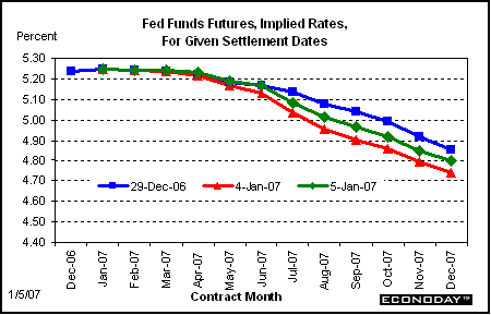 Following last Friday's employment report, the odds of a Fed cut in interest rates during the first half of 2007 went down notably compared to just prior to the report - according to the fed funds futures market, but still remain a little greater than 50 percent.
