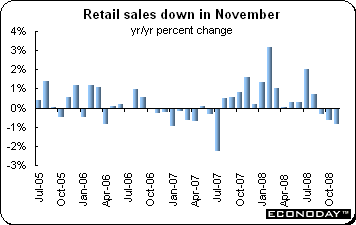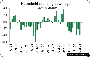 November retail sales were down 0.9 percent on the year. As with household spending, it confirms that consumers are holding onto their yen given the gloomy economic picture. Large scale retail store sales sank by 3.2 percent on the year.