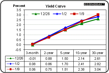 For this past week Treasury rates were mixed as follows: 3-month T-bill, down 2 basis points, the 2-year note, down 11 basis points; the 5-year note, down 19 basis points; the 10-year bond, 3 basis points; and the 30-year bond, up 22 basis points.