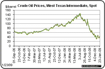 Not all factors lifted prices. Two geo-political issues keeping oil prices firm appear to have been resolved at least temporarily. Russia and the Ukraine have agreed upon a natural gas deal and Israel pulled its military out of the Gaza Strip. Government reports on petroleum stocks indicated that inventories were somewhat higher than expected but news of additional bailouts for banks helped boost prices.