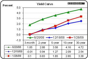 Over the past year, the Treasury yield curve has moved dramatically—and there is much to learn from the changes. At mid-2008, financial markets had improved temporarily and oil prices were still spiraling upward. The Fed had not yet slashed the target rate to near zero and inflation was a rising concern. By mid-December, the Fed had cut the target rate to essentially zero and the economy was seen as deep in recession. Treasury yields were low across the curve. But recently, longer rates have been firming noticeably. Either there is less flight to safety, inflation worries are boosting yields, or concerns over massive Treasury borrowing in the pipeline have bumped rates up—or all of the above. But the rise in longer rates at a minimum reflects a higher premium in part due to higher inflation expectations. The Fed’s quantitative easing does not leave the bond markets feeling easy about inflation.