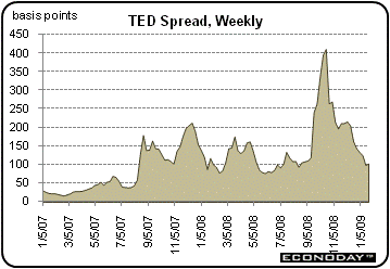 So, how are credit markets doing now according to perceived risks' Have Fed actions improved willingness to lend, based on the TED spread' The TED spread is now running about 100 basis points. This is substantially above its long-term average level but sharply lower than the latter part of 2008. The Fed’s quantitative easing has had a significant impact on credit markets.