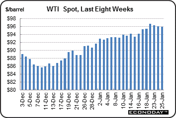 Net for the week, the spot price for West Texas Intermediate firmed 52 cents per barrel to settle at $95.97.