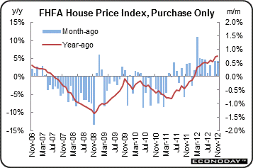 The latest Federal Housing Finance Agency (FHFA) price index gained 0.6 percent in November, matching the pace in October. Gains in the month were led by the Mountain region, surging 2.1 percent, with the East North Central lagging, down 1.0 percent.