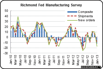 The Richmond District showed notable weakness for January, dropping to minus 12 for the overall manufacturing index from plus 5 in December.