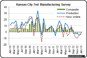 For the Kansas City Fed District, manufacturing activity contracted modestly again in January, but factories’ production expectations remained relatively optimistic for the months ahead. Many contacts blamed still-unresolved fiscal policy issues for caution in hiring and spending plans.