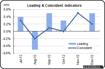 Finally, the coincident index posted a 0.2 percent rise, which indicates a respectable rate of ongoing growth, and a very strong 0.7 percent rate for the lagging index which points to stronger-than-expected growth in prior periods.