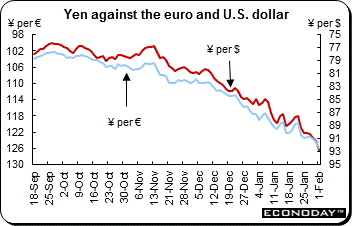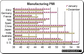 In China, the Markit/HSBC PMI climbed to a reading of 52.3 in January, up from 51.5 in December, signaling a modest improvement in operating conditions in the Chinese manufacturing sector for the third successive month. The CFLP also released its PMI which showed that manufacturing had eased in January to a reading of 50.4 from 50.6 in December and increasing for the fourth consecutive month. The official PMI is generally seen as reflective of state owned companies while the HSBC version is a better proxy for the private sector. Analysts cautioned against reading too much into the PMI numbers because economic data in China is always heavily distorted at the start of the calendar year as the lunar New Year approaches.