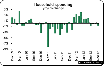 December household spending was down 0.7 percent from a year ago. The major declines were for housing and education, down 12.3 percent and 11.7 percent respectively on the year. Other declines were minor. Partially offsetting these declines was transportation & communication where spending jumped 9.0 percent on the year and fuel, light & water, up 3.8 percent.