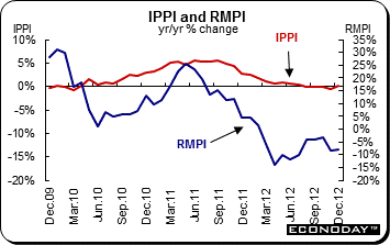 December industrial product prices were unchanged on the month and were up just 0.2 percent from a year ago. Of the 21 major commodity groups, six showed monthly gains while 11 declined and the remaining four were unchanged. The strongest increase was recorded by primary metal products (0.9 percent) reflecting increases in aluminium (2.6 percent), copper (3.1 percent) and nickel (6.0 percent). Wood products (1.0 percent) also saw a solid gain. The largest monthly decline was in motor vehicles and other transportation equipment (0.5 percent) which essentially offset the increases seen elsewhere. The exchange rate also had an impact and without the appreciation of the Canadian dollar, the IPPI would have increased 0.2 percent from November. Raw material and fuel costs dropped 2.0 percent and were 8.0 percent lower on the year. The entire monthly decline could be essentially attributed to mineral fuels which dropped 5.5 percent and without which, the RMPI would have risen 0.9 percent from November and gained 1.4 percent on the year. Apart from a 2.7 percent monthly increase in the cost of non-ferrous metals, most other categories saw relatively small moves.
