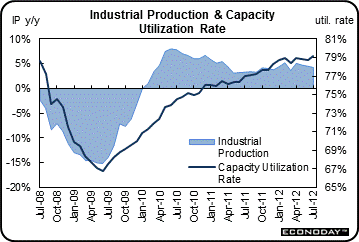 The export side likewise shows only scattered pressure. Total export prices rose an as-expected 0.3 percent in the month, which followed two prior months of declines, with the year-on-year rate at only plus 1.1 percent. Agricultural prices eased 1.3 percent but the year-on-year, reflecting the Midwest drought, continues to show major pressure at plus 10.7 percent in a reading that confirms the strength in the nation's farm incomes. Industrial supplies also showed some pressure, up 0.4 percent and reflecting the month's gain in petroleum inputs. Finished prices are mixed on the export side with consumer products and vehicles showing no pressure but with capital goods showing a spike, up 0.8 percent for a year-on-year rate that is still very benign at plus 1.0 percent.