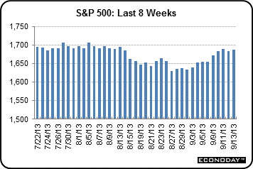 The FOMC announcement at 2:00 p.m. ET for the September 17-18 FOMC policy meeting is expected to leaves policy rates unchanged but focus on whether bond purchases will be cut back sooner or later and how fast. Also, the Fed will release its quarterly forecasts before the chairman’s press conference, generally about 2:00 p.m. ET with the statement.