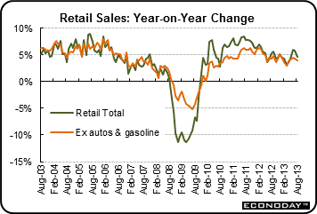Outside of energy, the Fed will not see much inflation at the producer level which gives the Fed latitude for slow tapering. And the consumer sector softened with the release of August retail sales—adding to that possibility.