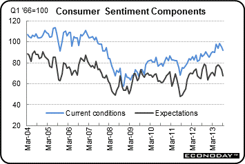 But the data on the first half of the month were soft with current conditions, a component that offers early clues on the monthly comparison with August, falling 3.4 points to 91.8. Note that strength in August was confined to the second half of the month and that the first half was weak. In fact a comparison of the mid-month readings shows a 0.8 point improvement this month.