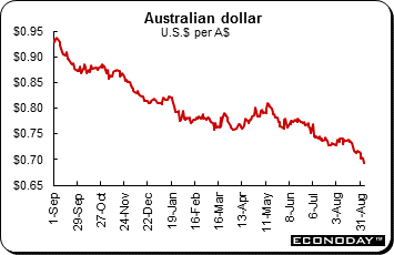 July retail sales surprised and slipped 0.1 percent – expectations were for an increase of 0.4 percent on the month. Sales advanced 0.6 percent in June. From a year ago, sales were up 4.2 percent after increasing 4.9 percent in June. Among categories that increased on the month were clothing, footwear & personal accessory retailing (2.9 percent), department stores (1.3 percent) and cafes, restaurants & takeaway food services (0.3 percent). Food retailing was relatively unchanged. Household goods retailing (down 1.9 percent) and other retailing (down 0.6 percent) retreated after increasing the month before. Sales were up in Queensland, Western Australia and the Northern Territory. Tasmania was relatively unchanged. There were declines in New South Wales, South Australia, Victoria and the Australian Capital Territory.