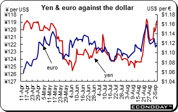 The upcoming week's economic data focuses on industrial output and merchandise trade. August data from China for merchandise trade and the consumer and producer price indexes will be carefully dissected for signs of improved growth. Japan's revised estimate of second quarter growth is expected to show a deepening contraction. The Banks of England and Canada will announce their respective monetary policies. Investors will be watching the BoC carefully — the country just slipped into a technical recession.