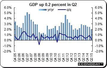 Second quarter GDP contracted 0.1 percent on the quarter or at an annualized decline of 0.5 percent. First quarter contracted at a revised 0.2 percent and ensured the first back-to-back contraction in real GDP since the first and second quarters of 2009. Annual growth halved to 1.0 percent, equalling its weakest rate since the fourth quarter of 2009. Among major components of domestic demand, household spending was up a respectable 0.6 percent on the quarter after a meagre 0.1 percent increase in the first quarter. However, gross fixed capital formation fell 1.6 percent, compounding the 2.2 percent drop last time, as business investment declined a further 2.0 percent (non-residential was down 3.1 percent). With government final consumption 0.3 percent firmer, final domestic demand was only flat, although this was a significant improvement over the first quarter's 0.5 percent contraction. Meantime, inventories were run down sharply and subtracted 0.3 percentage points from the quarterly change in GDP. Overall growth would have been a touch weaker but for a positive contribution from net foreign trade. Although exports edged up just 0.1 percent, imports fell 0.4 percent to ensure a modest net 0.1 percentage point boost.