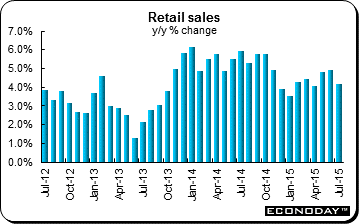 August retail sales were up 0.4 percent after declining 0.2 percent in June. Sales were up a workday adjusted 2.7 percent on the year, up from 1.7 percent last time. July's monthly rebound was led by a 0.8 percent jump in purchases of auto fuel and without this, non-food sales were just 0.1 percent higher having only stagnated in June. Food recorded a 0.2 percent advance. Regionally the advance was dominated by a 1.4 percent monthly jump in Germany. Spain (0.6 percent) also made a positive contribution but France (down 0.2 percent) saw its first decline since March. Elsewhere, there were solid gains in Estonia (2.5 percent), Malta and Portugal (both 1.1 percent) but Slovakia (down 0.2 percent) struggled.