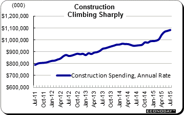 The strength of the economy right now is in the housing and construction sectors, again areas insulated from global factors. Construction spending, next to vehicle sales, is perhaps the week's best surprise, rising 0.7 percent for a second straight month. The graph tracks annualized dollar growth in construction and the slope has steepened nicely in the spring and summer. The latest gain is centered in the most important component of all, single-family homes where construction spending rose 2.1 percent in the month for a year-on-year gain of 15.8 percent. Multi-family homes slowed in the month but the year-on-year rate, reflecting demand tied to high rents, is still outstanding at 21.2 percent. Non-residential components are also showing life with strength in both transportation and power and surprising strength in manufacturing.