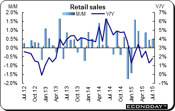 July retail sales extended their recent positive run to three months with a 0.5 percent increase from June (revised down to 0.4 percent). The gain boosted annual sales growth from 1.3 percent to 1.8 percent. The recovery in nominal demand, which reflected increases in six of 11 subsectors, was only partially mirrored in volumes which edged up 0.2 percent from the end of last quarter and now stand 0.9 percent higher on the year. The monthly nominal advance came largely from a 2.0 percent rise for motor vehicle & parts dealers. Indeed, excluding this category purchases were only flat. The other main areas of support were clothing & accessories, sporting goods, hobby, books & music and miscellaneous. Weakness was most apparent in electronics & appliance stores, food & drink and furniture & home furnishings.