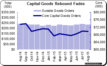 Another area of weakness for August was a give back in orders and shipments for capital goods, both of which fell after two months of core strength. It may be just a fluke, but the decline does coincide with the yuan devaluation and downturn in China's outlook. The August dip in capital goods could prove, at least in theory, to be one of the first tangible indications of China-related weakening. Durable goods for August confirmed the weakness of the prior week's industrial production report where manufacturing came in flat. And let's bring in company news, Caterpillar, which is at the very heart of the capital goods group, just announced a mass layoff in further evidence of a China effect.