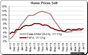 Case-Shiller Unadj. 20-City Index, Y/Y Chg - Consensus Forecast for July: +5.3%