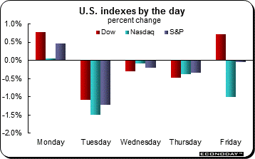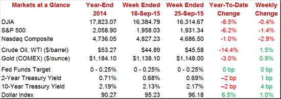 But it was China again, this time weak factory indications, that sank the U.S. stock market at least until Friday when a rally, which followed Yellen's comments, trimmed the week's loss to only 0.4 percent for the Dow. Oil had a good week, ending 1.5 percent higher near $45.50 with gold up 0.9 percent near $1,150. Rates were stable in the week while the dollar index rose 1.0 percent to stretch its year-to-date gain — to the regret of both U.S. exporters and those trying to raise inflation — to 6.5 percent.