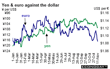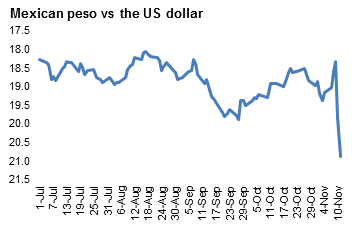 Global financial markets gyrated around the election results in the U.S. The upset victory by Donald Trump initially sent equities tumbling especially in Asia. Cooler heads prevailed during early Wednesday morning and equities staged a rally in Europe (after initially sinking) and in the U.S. The prospect of less regulation sent financial and health care shares higher. However, the 'Trump rally' did not last through the end of the week. In government bond markets, investors were betting that expansive fiscal spending and tax cuts under a Trump administration would mean higher bond yields after years of low real growth and low inflation across Europe, North America and Japan.