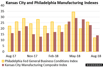 But not all the week's factory data are so favorable. Rough indications on what to expect for manufacturing as a whole in August have been soft. The Kansas City Fed's index slowed to 14, down from 23 in July and 9 points below Econoday's consensus for the lowest reading of the year. Orders slowed 3 points to 9 with shipments down 4 points to 18 and hiring down 2 points to 12. And the workweek barely showed any growth at all, at plus 1 in August vs 14 in July. But a little slowing may actually be a plus for Kansas City's sample given the risk that activity was becoming unsustainably strong, a risk highlighted by lengthening delivery delays and highly elevated input costs. These results follow the prior week's manufacturing report from the Philadelphia Fed where the headline dropped 13.8 points to 11.9 for the lowest score in this report in nearly two years.