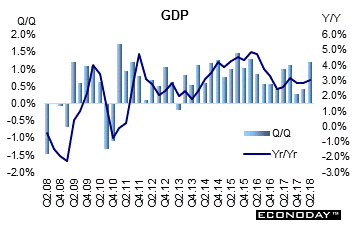 In the three months to June, gross domestic product advanced 1.0 percent on the quarter after increasing 0.5 percent in the three months to March. On the year, GDP was up 2.8 percent after increasing 2.7 percent in the previous quarter. Stronger headline GDP growth was largely driven by the agriculture, forestry and fishing sector, up 4.1 percent on the quarter after growth of 1.0 percent in the previous quarter. Activity also strengthened in the services sector, up 1.0 percent on the quarter after increasing 0.6 percent previously, with wholesale trade, retail trade and accommodation and transport, postal and warehousing also contributing to headline growth. An unplanned shutdown of a major natural gas facility resulted in a large fall in mining output, down 19.9 percent on the quarter after a drop of 1.4 percent previously, while this shutdown, as well as scheduled maintenance of a major refinery, also contributed to weaker growth in manufacturing output, up 0.4 percent on the quarter compared with 0.4 percent previously. In expenditure terms, GDP rose 1.2 percent in the three months to June, up from 0.4 percent in the three months to March. Household consumption rebounded strongly with an increase of 1.0 percent after zero growth in the three months to March. Government spending also strengthened, up 2.2 percent after a previous increase of 0.8 percent. Higher growth in imports was outweighed by a bigger increase in exports resulting in a solid positive contribution to growth from net exports. Business investment, however, was weaker, slipping 0.1 percent on the quarter after increasing 0.4 percent previously.