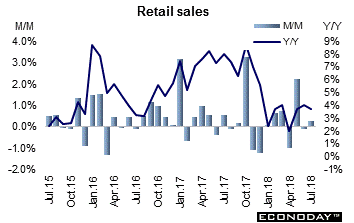 August retail sales volumes were up 0.3 percent on the month after July’s upwardly revised gain of 0.9 percent. However, annual growth slipped from 3.8 percent to 3.3 percent but this just reflected a particularly robust period a year ago. Excluding auto fuel, sales were also up 0.3 percent from July and were 3.5 percent above their level in August 2017. The headline data would have been stronger still but for a 0.6 percent monthly drop in purchases of food. Excluding auto fuel, non-food demand climbed an impressive 1.2 percent, compounding July's 0.7 percent gain. This was the fourth significant increase in the last five months. Household goods (4.5 percent) saw their steepest rise since May 2016 and the other stores category (2.8 percent) also had another very good month. Non-store retailing (0.3 percent) and non-specialized stores (0.1 percent) edged firmer while auto fuel was flat.