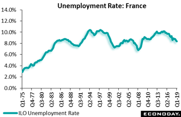 Employment data were also posted in France and the UK and here the results were also mixed. Joblessness in metropolitan France fell 19,000 in the first quarter following a 100,000 drop in the fourth quarter. The first quarter decline put the number of people out of work at 2.441 million, its lowest reading since the first quarter of 2009, and the unemployment rate at 8.4 percent, a tick down on the previous period. Including overseas territories, joblessness declined 21,000 to 2.601 million, also reducing the rate by 0.1 percentage point to 8.7 percent. The improvement in the metropolitan area was attributable to women for whom the jobless rate eased from 8.5 percent to 8.4 percent. Among men, the rate was only unchanged at 8.4 percent. Unemployment has been on a downward trend since the middle of 2015, yet the tick lower in the first quarter was one of the smallest during this period. France's rate remains above the Eurozone average (7.7 percent in March) and is a major issue for government policy.