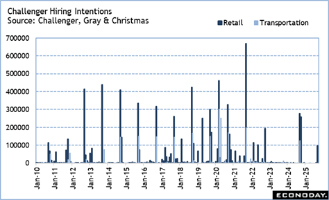 Challenger numbers of hiring plans may look gloomy again as retailers and/or