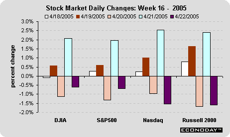 The equity market saw very good days this week - along with very bad days! Indeed, Thursday's gain in the major indexes was among the largest in a couple of years. But before one gets overly excited, the market suffered some significantly large declines as well. The bulk of this week's movement stemmed from optimistic as well as pessimistic earnings coming from a variety of companies. Inflation news did hurt the market on Wednesday, but most of the focus was earnings-based. Despite the sharp fluctuations in both directions, the Friday-to-Friday change was slightly positive.