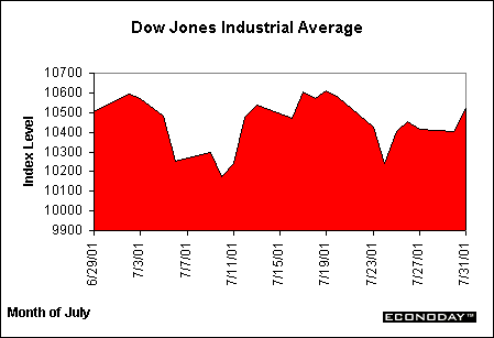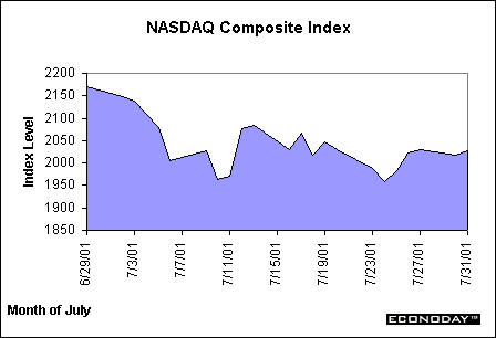 Though equities were mixed in the month of July, pessimism continued to rule amid low volumes and continuing profit warnings. The Dow Jones Industrial Average actually moved up for the month, the only equity index to do so, yet most of the gain was due to end-of-month bargain hunting. July began and ended about the same for the Dow, hovering around 10,500 points and moving in roller coaster fashion throughout the month. The NASDAQ composite index began the month comfortably above 2,000 points, began a move down under 2,000 before edging back up to the level for the final two weeks of July. Earnings warnings from technology companies throughout the month dominated the news and kept market players from gaining any sense of optimism and the market from sustaining any rallies. FOMC meetings and interest rate cuts were absent during the month. Instead, investors had to sift through economic reports showing continuing weakness and Chairman Greenspan's testimony to Congress on the 18th. Despite the rally in the last week of July, investors are still waiting for interest rate cuts to take effect and continue to look to the Fed to help stop the bleeding.