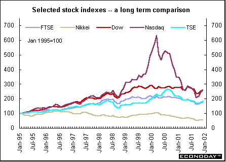 In Asia, things were not much better. In 2001, Japan's Nikkei fell a further 24 percent on top of the preceding year's 27 percent drop as the economy
