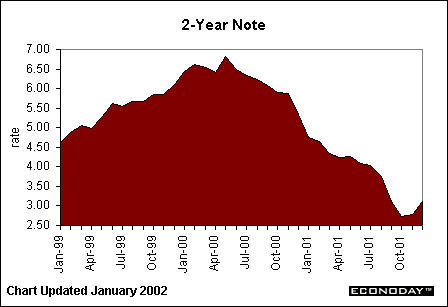 The Treasury market has undergone dramatic changes since last February. An aggressive easing policy by the Federal Reserve led Treasury yields on a downward track in 2001, but the Fed cuts were nothing compared with the dramatic rally that ensued in the wake of September 11. On the supply side, the Treasury introduced a new weekly bill, a four-week bill, and announced an indefinite suspension for new 30-year bonds. While many investors had long expected such supply changes, the market was still caught by surprise at the November refunding announcement. Treasuries have yet to find stable ground, dropping as stocks began to rally in December. January has seen Treasury securities rally once again as market players continue to hope for further rate cuts and a later-than-sooner recovery for the economy and stock market.
