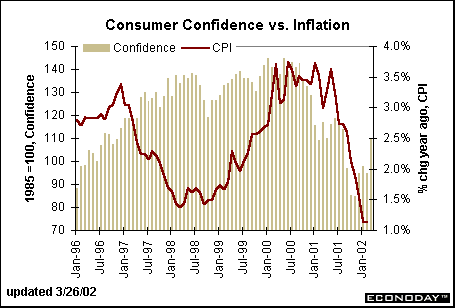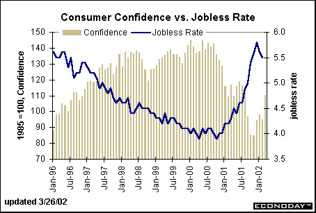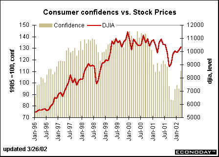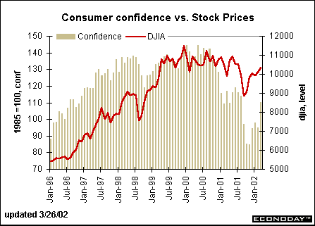 A Wall Street Journal headline on Tuesday noted that the March consumer confidence report - up 15 percentage points in one month - fueled the equity market. The level was at its highest since last August, but the magnitude of the gain was the largest since March 1991! There is no wonder that equity markets were heartened by the news.