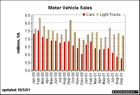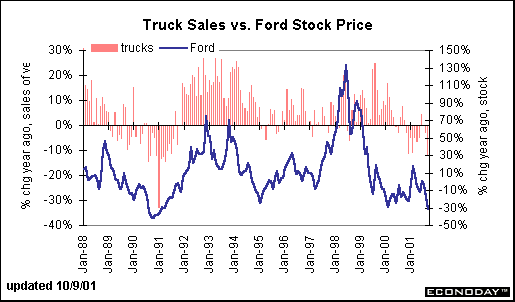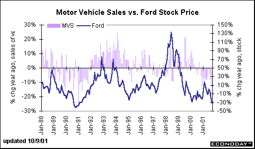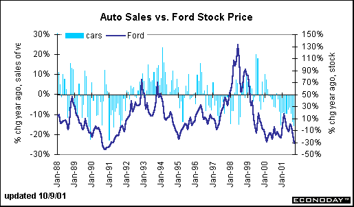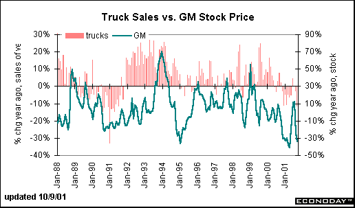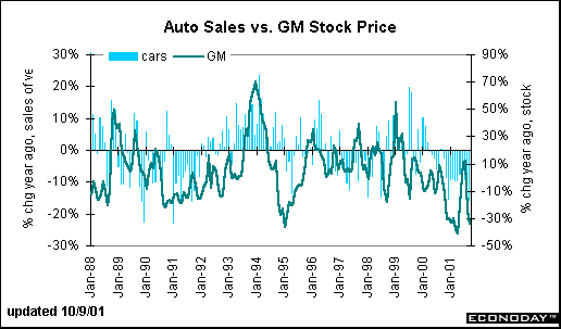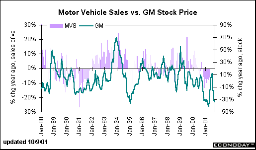 As evident in the chart above, auto sales have headed down during much of 2001 from the levels seen in 2000. At the same