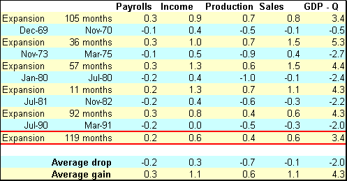 expansion (listed as "Expansion 119 months") shows generally below average growth for an expansion for each of the monthly