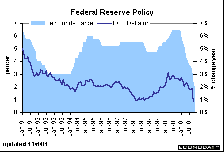 because it is a better measure of changes in the cost-of-living. The PCE deflator was up 0.9 percent in September 2001 over