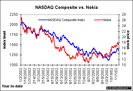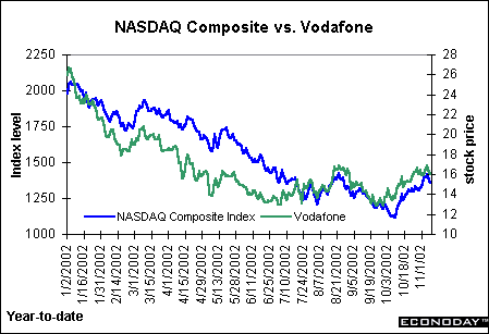 In examining the data on the Vodafone chart, we see very similar results to the Nokia chart. The results are indicative of the severe weakness in the telecommunications sector. Vodafone, a leading global telecommunications company, underscores that weakness in telecommunications is not a U.S. problem but an international epidemic.