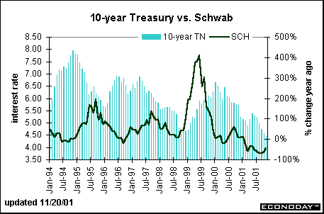 Changes in Charles Schwab's stock price don't follow either of these indicators very well. Given that Schwab is considered more of a discount