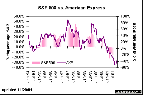 In fact, look how the year-over-year change in the stock price for American Express moves almost exactly in line with the year-over-year change