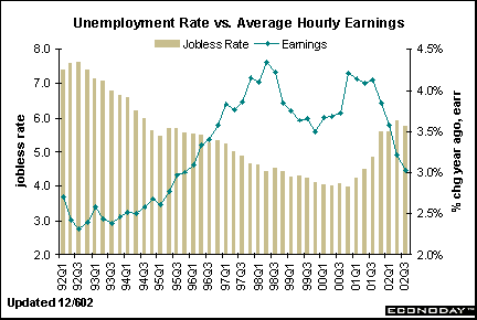 The unemployment rate jumped to 6 percent in November. It remains in its at the high end of its range of the past several months. Labor market conditions haven't changed much these past two quarters. Hourly earnings are moderating; this bodes well since it suggests that inflationary pressures are not in the pipeline.