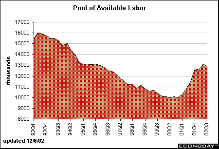 The civilian unemployment rate can indicate tightness in the labor market. But economists and policy makers have long held the belief that the unemployment rate can give a misleading picture of the degree of labor market tightness because the supply of labor isn't fixed. Indeed, people are often not counted as part of the labor force when the economy is in recession because they simply give up job hunting. As a result, the unemployment rate is often underestimating the true level of unemployment. In good economic periods, people are more likely to enter the labor force because they have more confidence they will find a job. Thus, the Fed chairman likes the idea of going to the source - that is, the source of available labor. The labor pool consists of the unemployed plus those not in the labor force who report they want a job now.