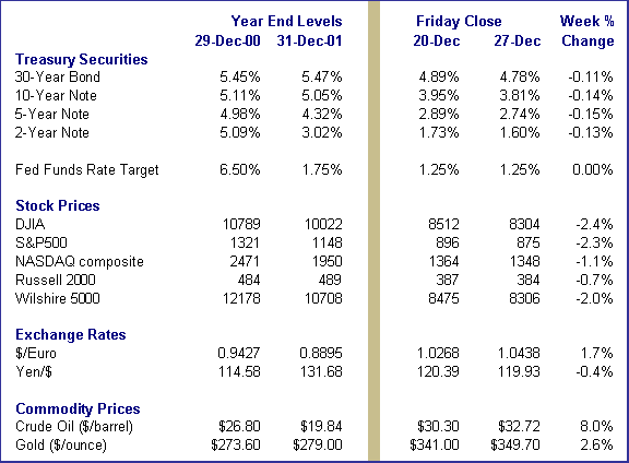 Weekly percent change column reflects percent changes for all components except interest rates. Interest rate changes are reflected in simple differences.