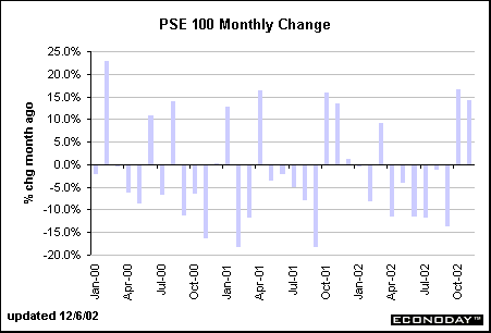 The PSE declined surged in October and November, but has posted only four monthly gains in the past twelve months. Monthly declines were generally larger than the increases.